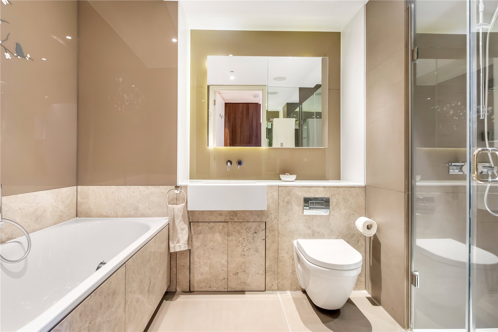 Additional installations include; Sonos speakers throughout, Wine cooler, Breakfast Bar, Bespoke lounge unit (with motorised pop-up TV) cabinet, built in bedside cabinets and an Ottoman (underbed storage) bed to name a few. Moreover, a parking space can also be purchased separately should it be required.