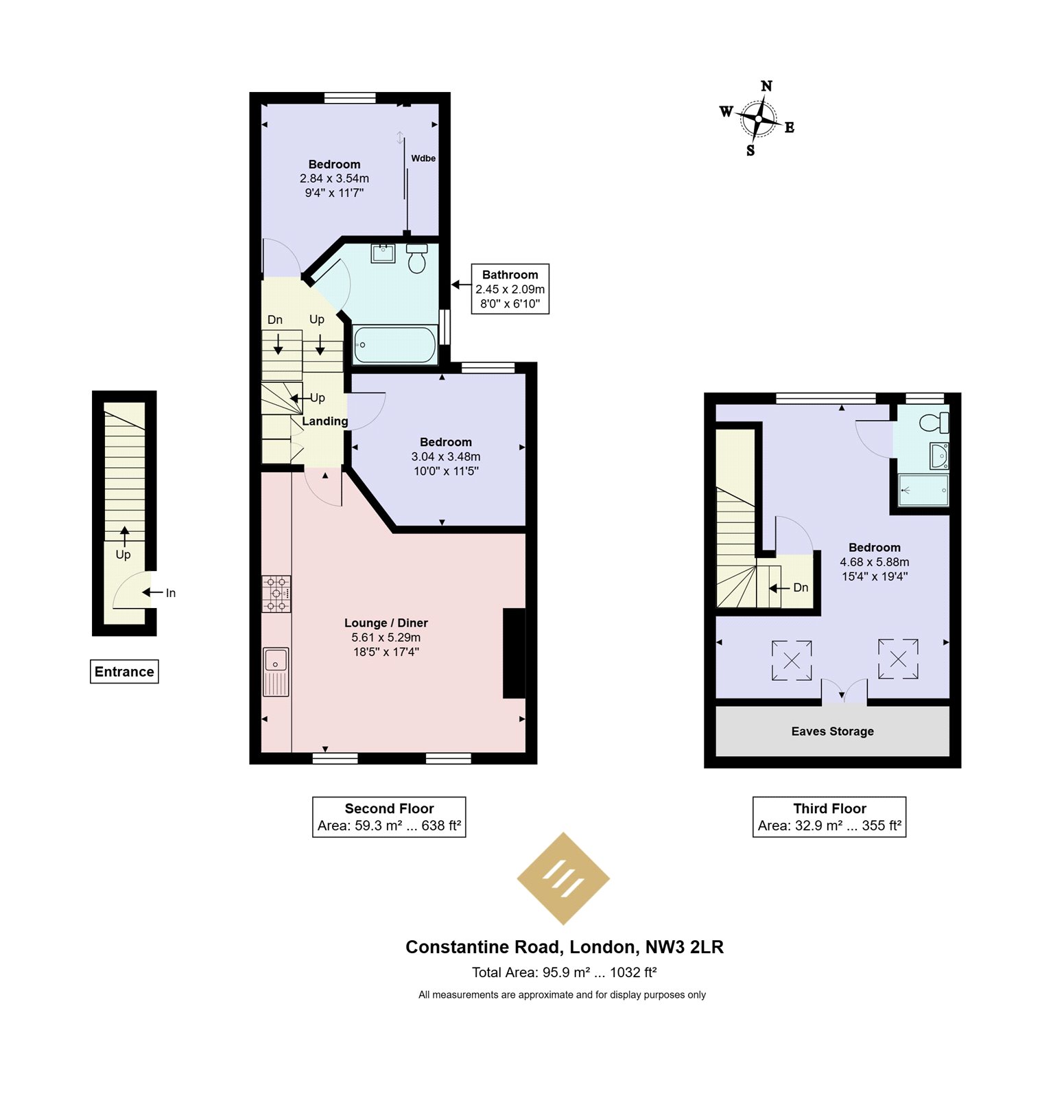 Located only 0.4 miles from Hampstead Heath Overground and equidistant to Gospel Oak Overground; the surrounding amenities are vast and a plethora of shops, restaurants and cafes are on offer as well as the beautiful greenery and woodlands of Hampstead Heath.