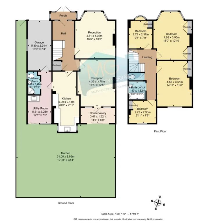 Boasting over 1719 sq ft of space, the property is comprised of two, large double bedrooms, two smaller bedrooms, alongside a bathroom suite with separate WC. Downstairs, there is a large front reception room, a dining room to the rear leading to a conservatory, a well equipped kitchen with a garden outlook that wraps round in to a utility room, downstairs bathroom and a sizeable garage.