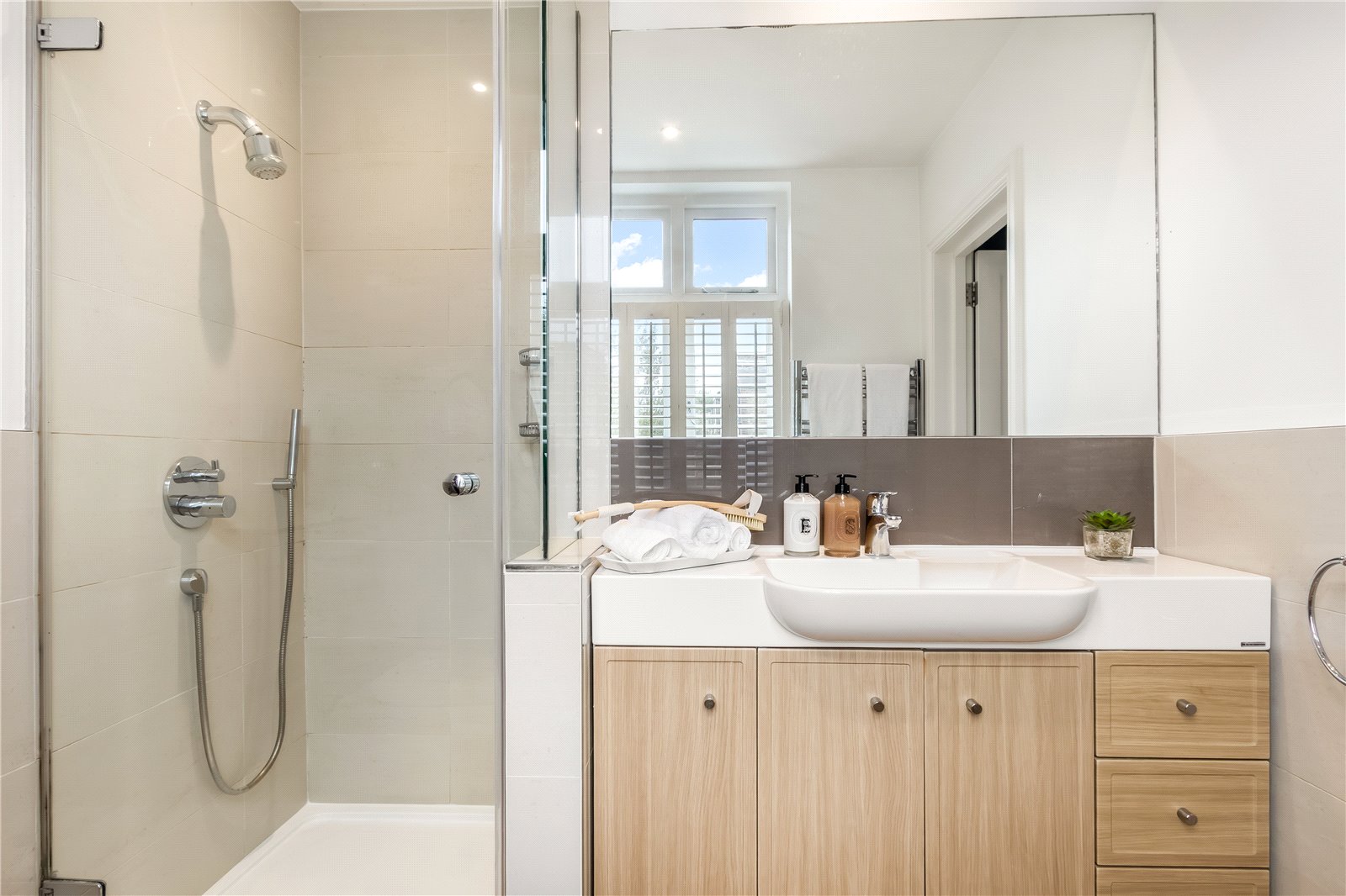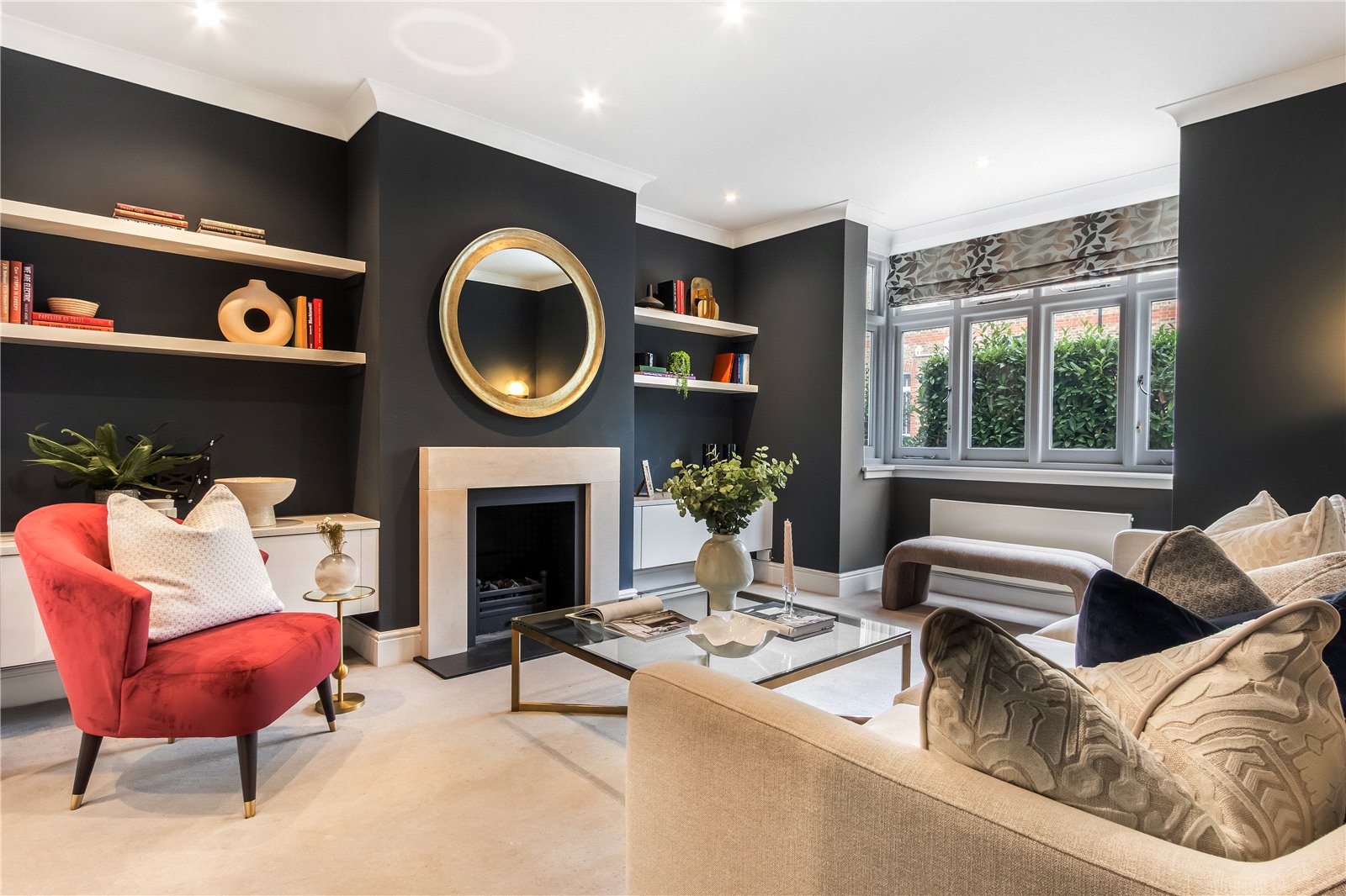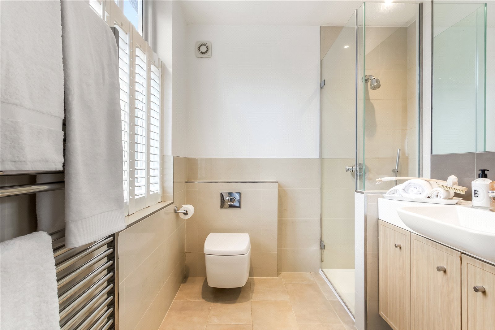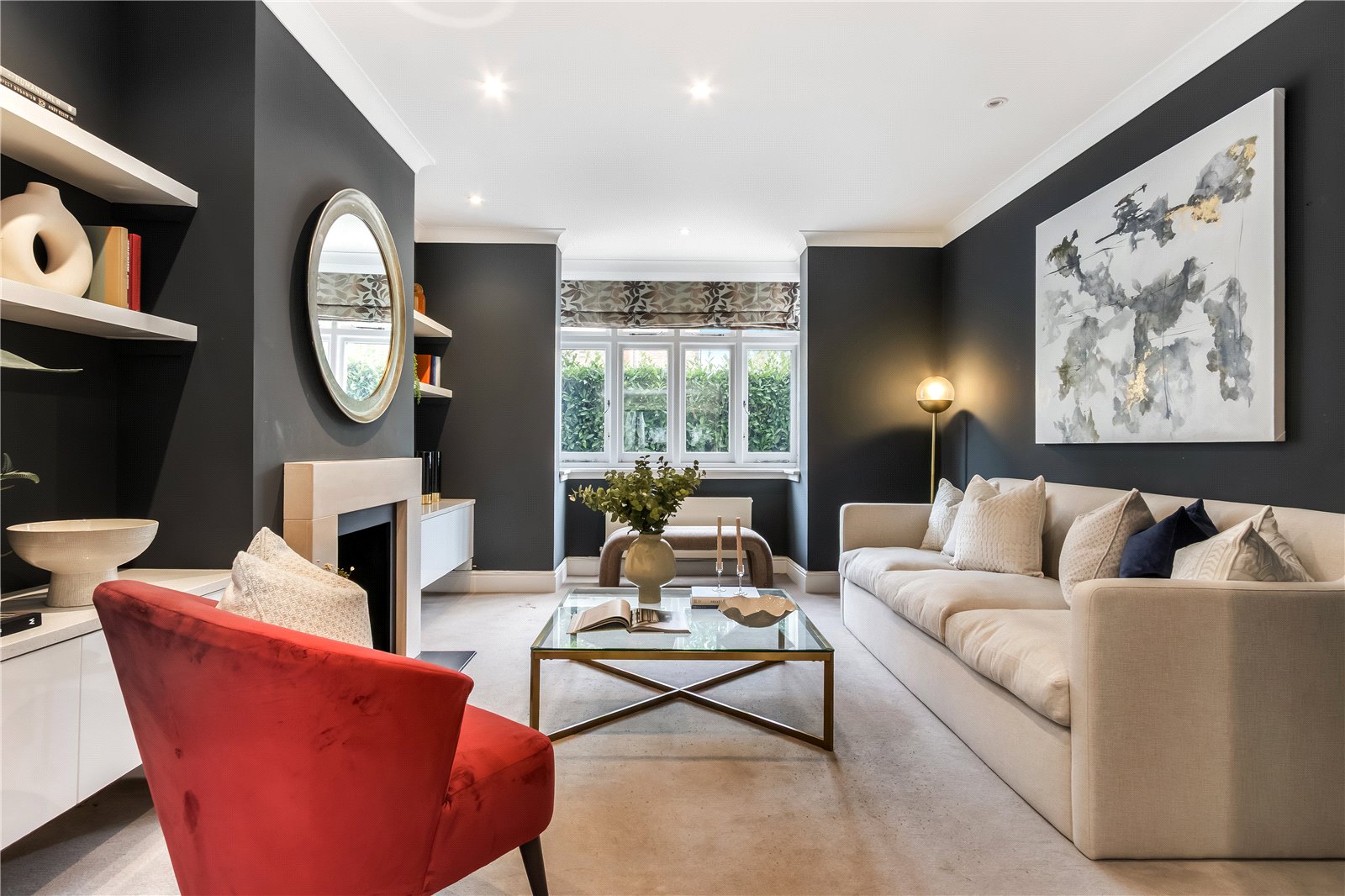 Further advantages include a shared driveway to the side, double-glazed windows throughout, and underfloor heating in three bathrooms.