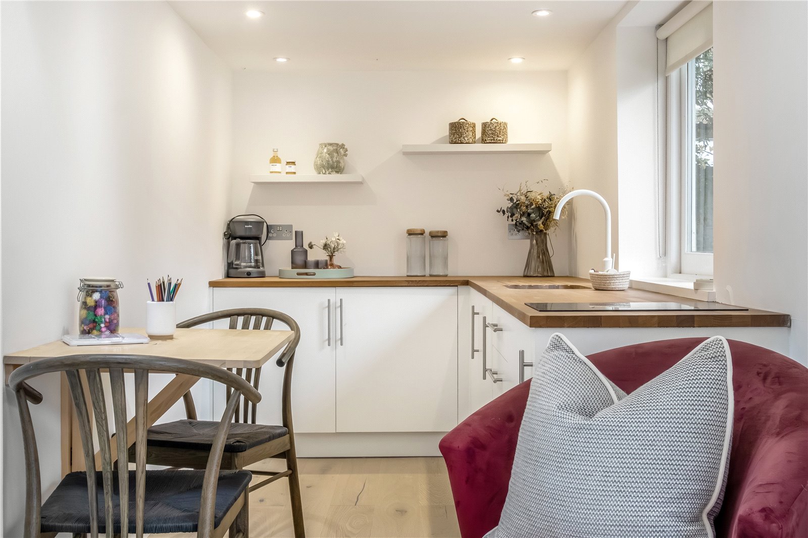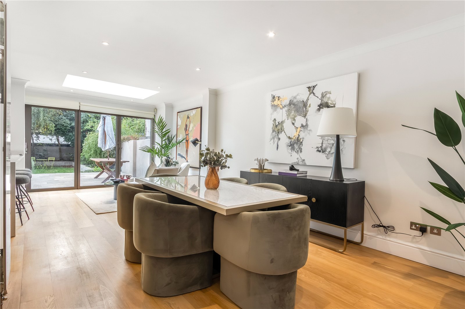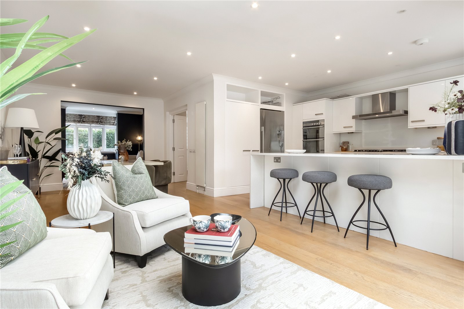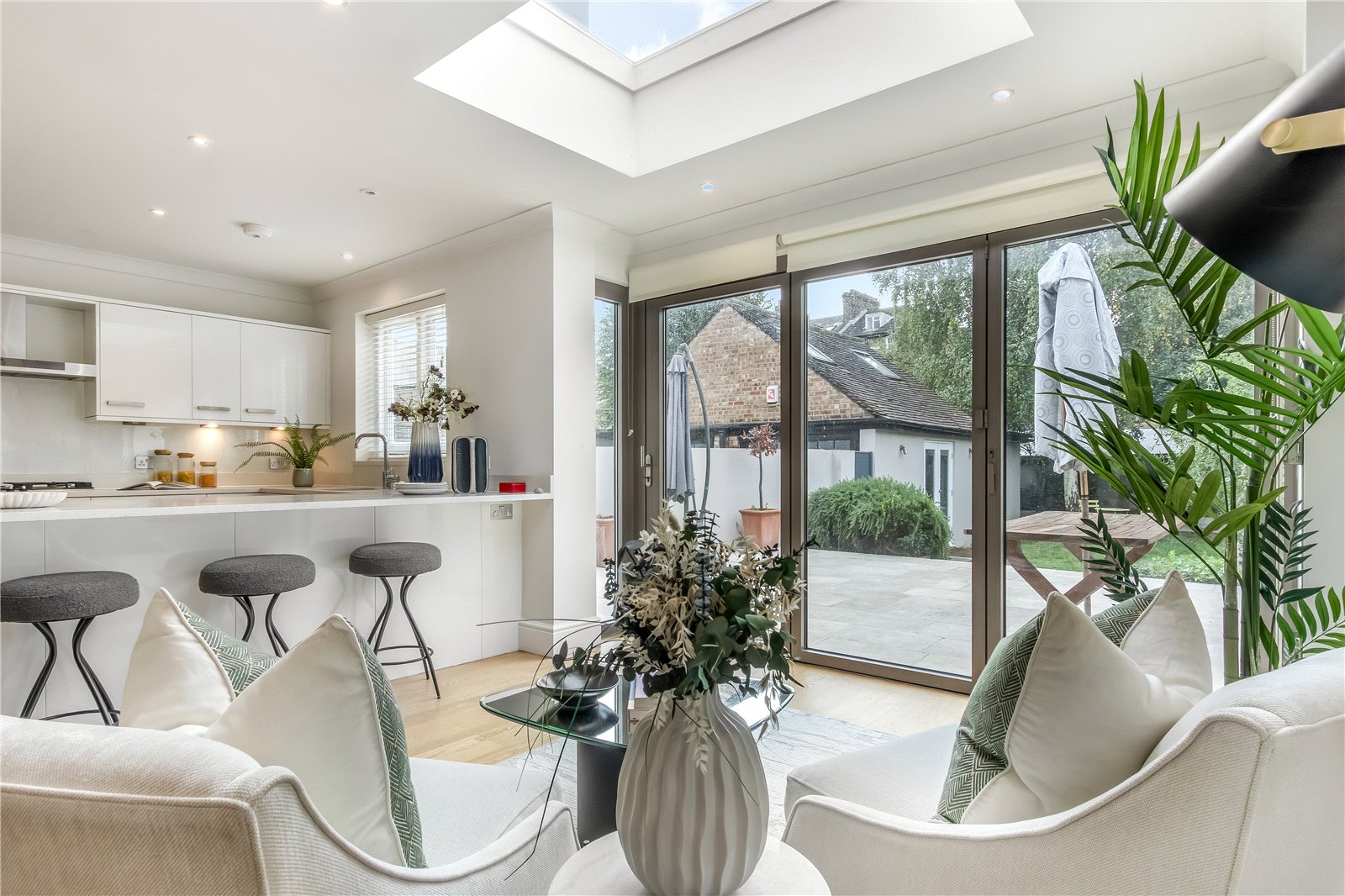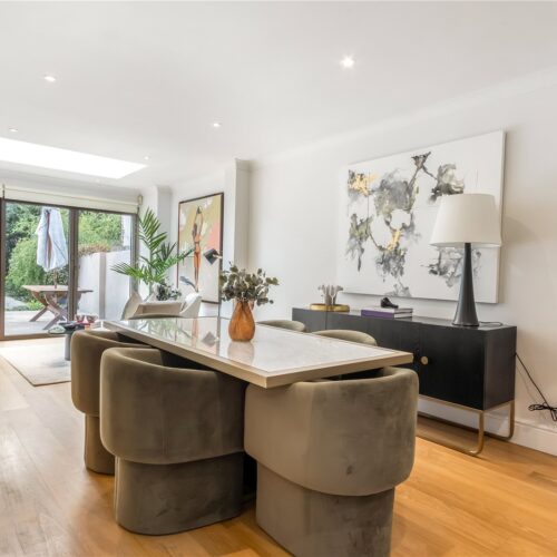 Spread over three spacious levels and offering more than 2,200 sq ft of thoughtfully planned accommodation, this stylish home blends scale, comfort, and modern design. There are four bedrooms in total — three generous doubles and a smaller double — together with three contemporary bathrooms, two of which are en suite. Throughout the property, tall ceilings and clean finishes enhance the sense of light and space.