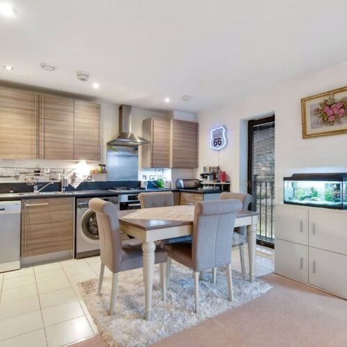 The property is offered chain free with 88 years remaining on the lease. In addition, the service charge on the property is £185 per calendar month alongside £485.83 per calendar month for rent on the remaining 60% ownership. Ground rent is also £14.58 per calendar month.