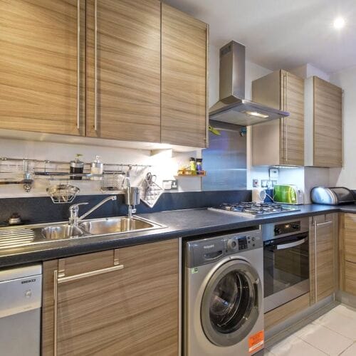 Furthermore, the apartment is located on the second floor and boasts over 815 sq ft of lateral space. It is comprised of a large kitchen/reception, utility cupboard, bathroom, two-double bedrooms and a balcony. Moreover, the apartment benefits from modern features and due to its sheer size, offers ample living space throughout.