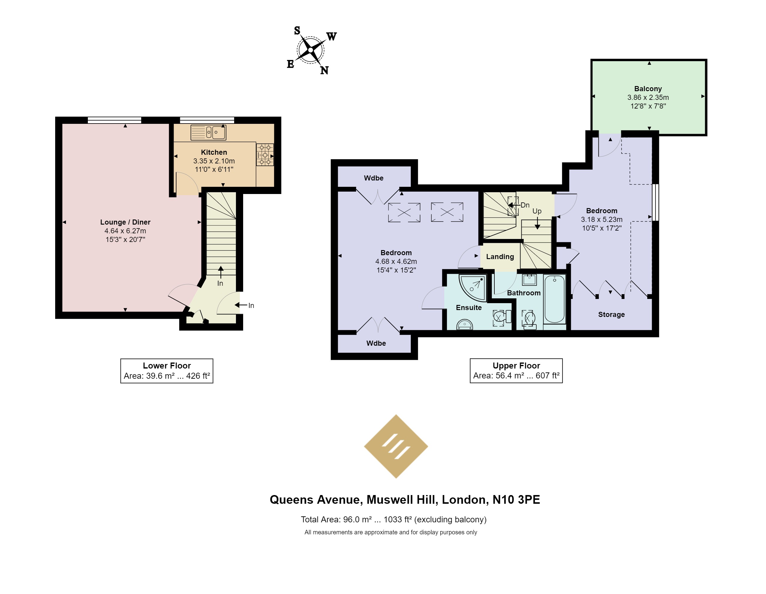 Boasting an approx. gross internal area of approx. 1033 sq. ft, the spacious living room/diner is flooded with natural light and gives access to a fitted kitchen, there is the opportunity to knock the wall down to create an open plan kitchen/reception room. On the upper floor, you will find the principle bedroom with its own en-suite, a family bathroom and a double bedroom which gives access to a private, south-west facing balcony that catches a lot of sunlight.