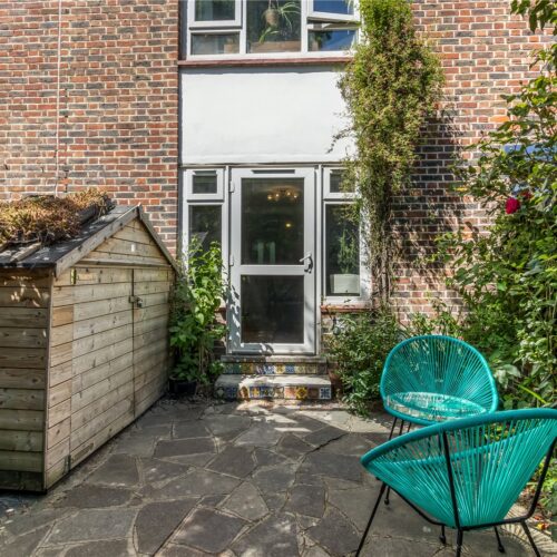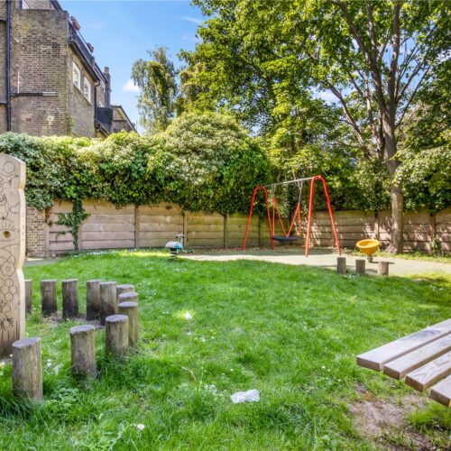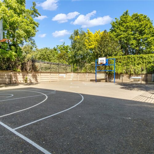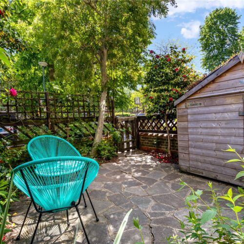To the rear, the property opens directly into a secure, exceptionally well-maintained garden. This shared space includes additional outdoor storage, a BBQ area, a children’s playground, a basketball court, and other useful amenities. The property also includes a private garden shed as well as an additional rented shed for extra storage.